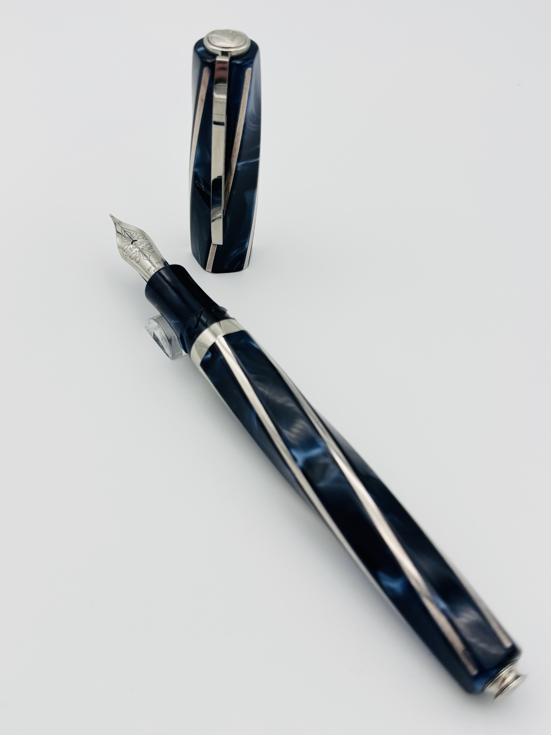 Beneath this sculptural form lies Pelikan’s timeless writing performance: an 18k/750 gold nib (rhodium-plated for a sleek silver finish) delivers smooth, expressive strokes while the piston-filling mechanism ensures generous ink capacity and reliable flow. A dark ink window discreetly integrated into the barrel lets you monitor ink with subtlety and style.