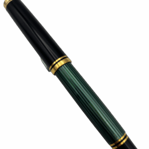 The Pelikan Souverän M805 Metal Sleeve Fountain Pen is a striking reinterpretation of a classic writing instrument, blending Pelikan’s legendary German craftsmanship with modern architectural flair. Its polished black acrylic barrel is elegantly wrapped in a laser-cut stainless-steel sleeve with geometric precision—creating a tactile and visually dynamic exterior that invites every detail to be explored.
