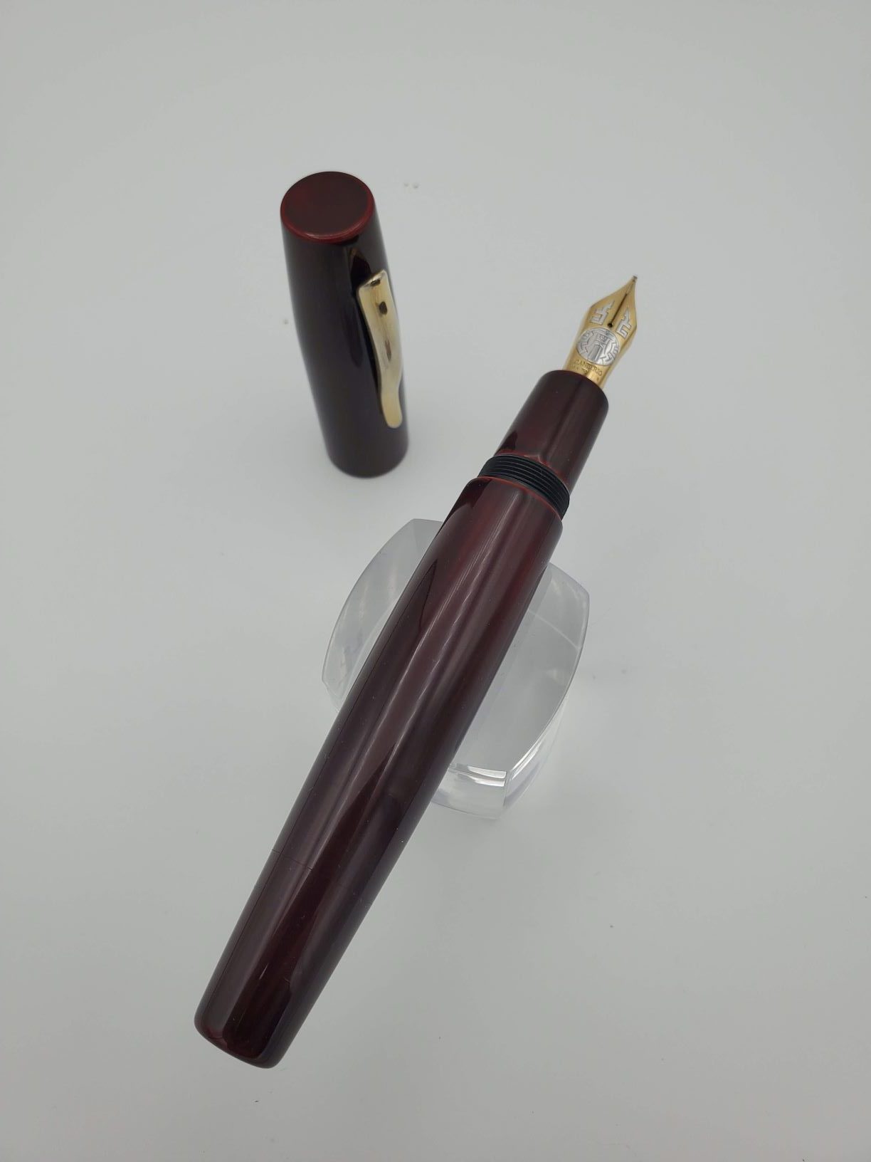 < Back You are here: KB Home Fountain Pen Database Danitrio Danitrio Fountain Pens Print Danitrio Fountain Pens Created OnMarch 13, 2020 Last Updated OnMarch 13, 2020 by Danitrio Mikado Flat Top with Clip Ebonite with Shu-dame Urushi Eyedropper features a #8 Nib in 18k Gold