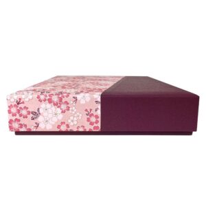 A pasteboard box that can be used as a tool box or gift box This pasteboard box is practical as an organizer for A4 notebooks, letter paper, small stationery, and important mementos, and is also very popular as a gift box. The feel of Japanese paper is comfortable to the touch, and the combination of the gorgeous yuzen pattern and plain dyeing is exquisite. The gorgeous yuzen pattern is printed on Japanese paper using a multicolor screen-printing technique