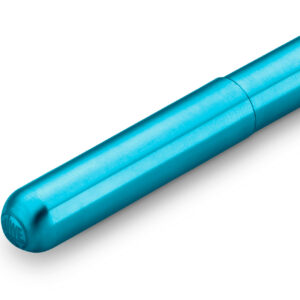 The Kaweco Liliput is an ultra-compact fountain pen that transforms into a comfortable full-sized writing instrument when posted. Made from anodized blue aluminum, this elegant pen features a stainless steel nib and includes a standard short international ink cartridge for immediate use. The screw-on cap posts securely to the back, ensuring a seamless writing experience.