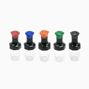 Our fountain pen ink is dispensed in a small 20 milliliter transport vial. We chose plastic vials over traditional glass bottles for several reasons: