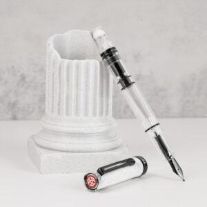 Inspired by the timeless beauty of Italian marble, the TWSBI ECO Carrara with Onyx Trim brings refined artistry to everyday writing. Its white, marbled resin body evokes the smooth elegance of Carrara stone, beautifully contrasted by deep black accents that add a modern edge.